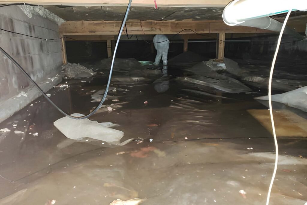 Pumps remove standing water while we spray antimicrobial treatments. This step stops the damage from getting worse right away.